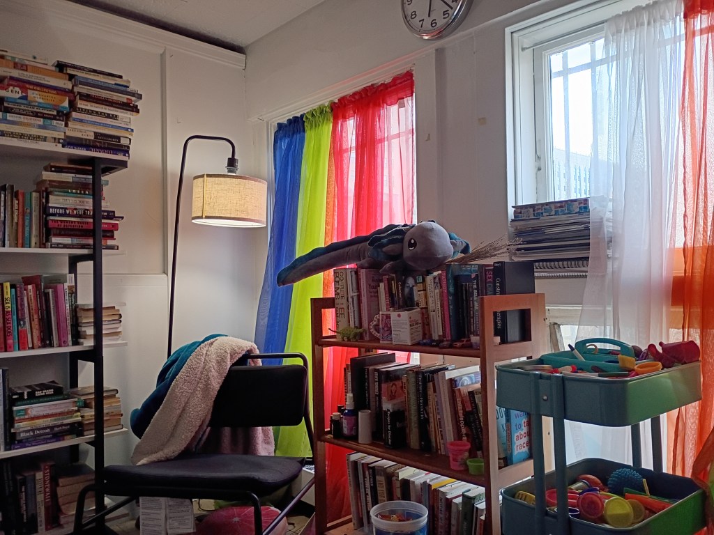 We challenge ourselves daily to better understand and meet the needs of oppressed survivors — in particular, trans and nonbinary survivors, BIPOC survivors, poor and low-income or working class survivors, d/Disabled survivors, sex workers and other survivors engaged in criminalized or survival economies, survivors in recovery from addictions, survivors of the criminal punishment system or other forms of State violence, survivors living in bodies of size, survivors of human trafficking and organized abuse, and others often overlooked and harmed in clinical settings.